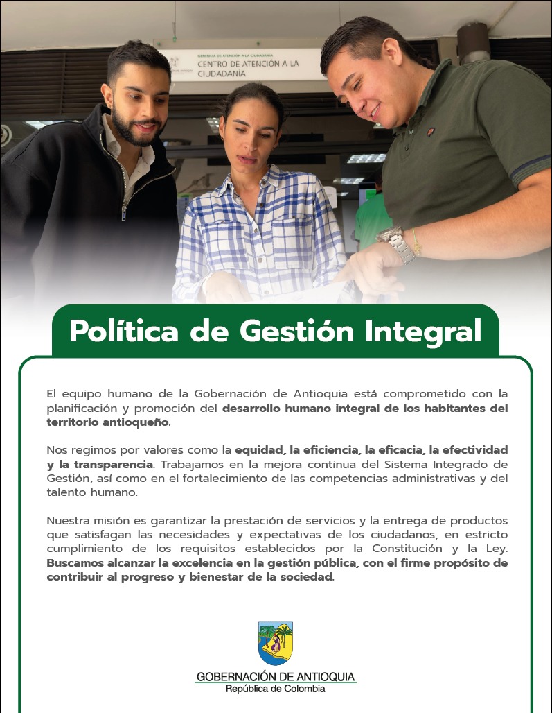 En La Gobernación de Antioquia el ciudadano es nuestra razón de ser, por eso hemos generado estrategias que buscan garantizar una atención oportuna que satisfaga sus necesidades y acerque los servicios de la Gobernación a la comunidad. Para lograr este propósito con los mejores beneficios para el ciudadano, se creó la Dirección de Atención a la Ciudadanía a través de la cual se habilitan diferentes canales que garantizan un servicio integral.