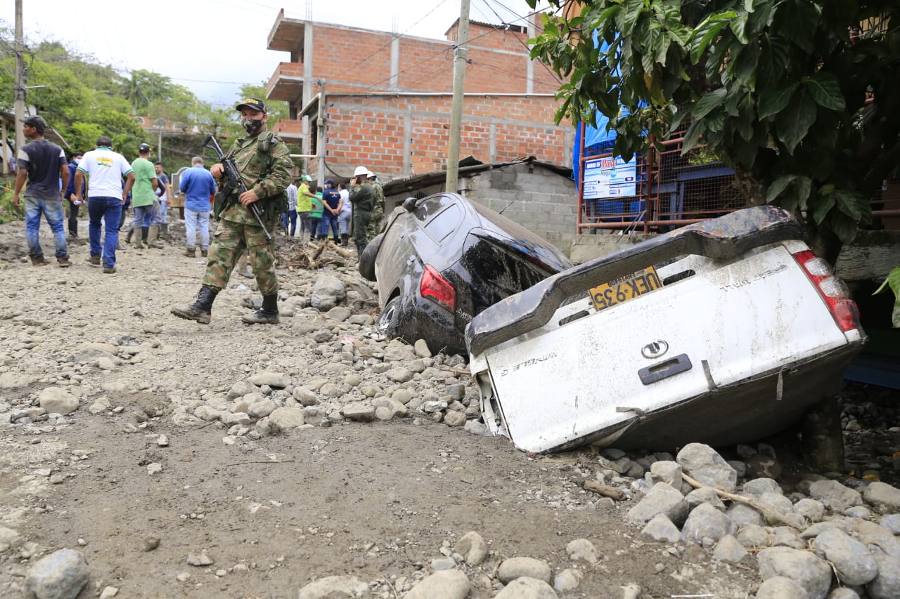 “Se hizo un sobrevuelo en el nacimiento de la quebrada y por toda la cuenca de las quebradas que llegan al municipio, en el que no se evidenció ningún desprendimiento o movimiento en masa que hubiera podido generar represamiento, por lo que se puede decir que fue una creciente súbita que arrastró mucho material por una infraestructura hidráulica insuficiente y por ahí se desvía el agua y genera las afectaciones”, explicó.