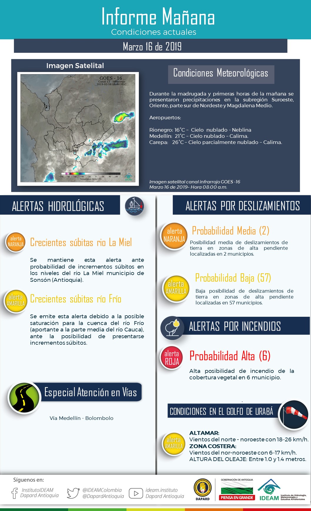 ¿Cómo está el tiempo en Antioquia? 16/03/2019