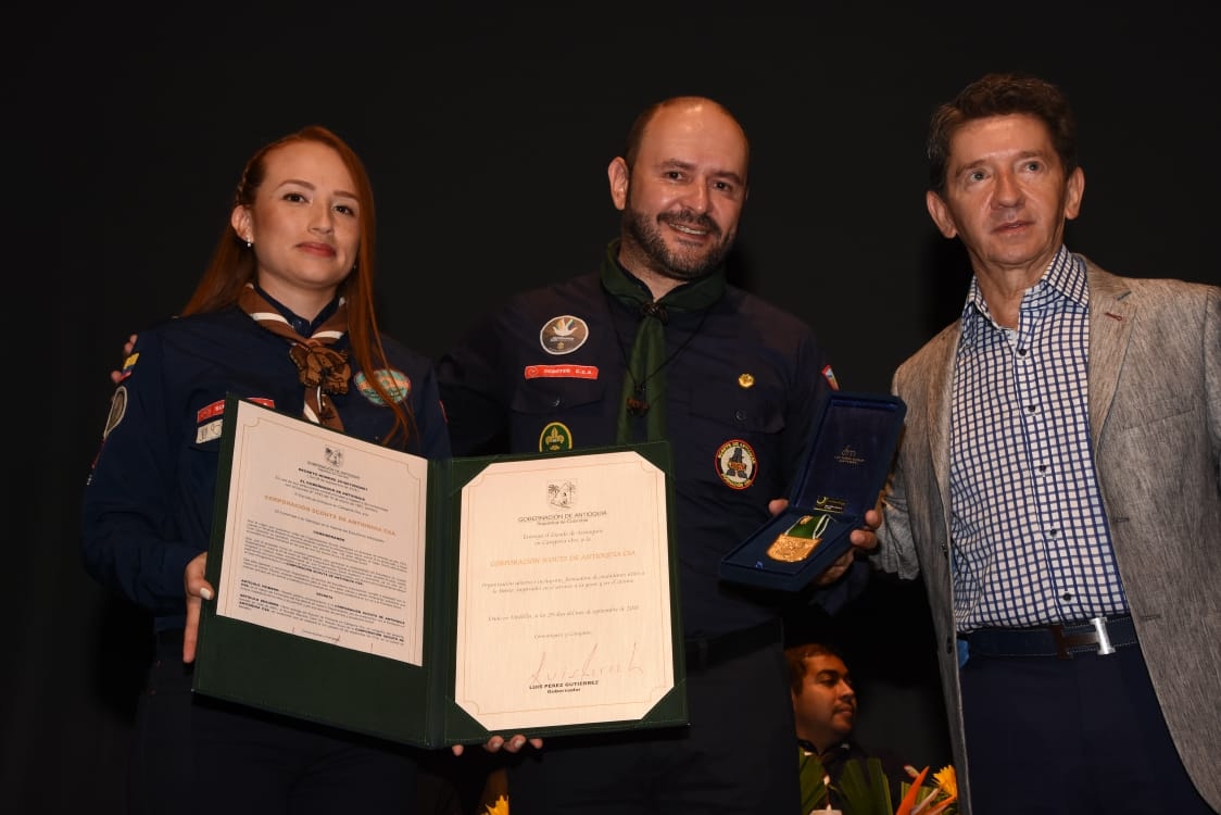 El Gobernador de Antioquia, Luis Pérez Gutiérrez otorgó este sábado el Escudo de Antioquia Categoría Oro a la Corporación Scouts de Antioquia CSA, en homenaje a su liderazgo en la historia del Escultismo antioqueño.