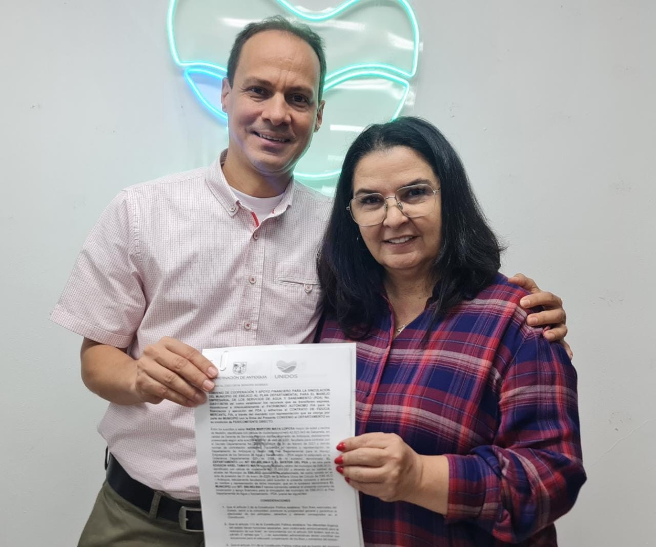 Un convenio por 1.970 millones de pesos para la destinación de recursos aportados por la Gobernación de Antioquia y la Alcaldía de Salgar para la construcción del alcantarillado urbano del municipio de Salgar, fue firmado hoy entre la gerente de Servicios Públicos del Departamento, Nadia Maryori Maya Lopera, y el alcalde de este municipio del suroeste antioqueño, Carlos Londoño Vélez.