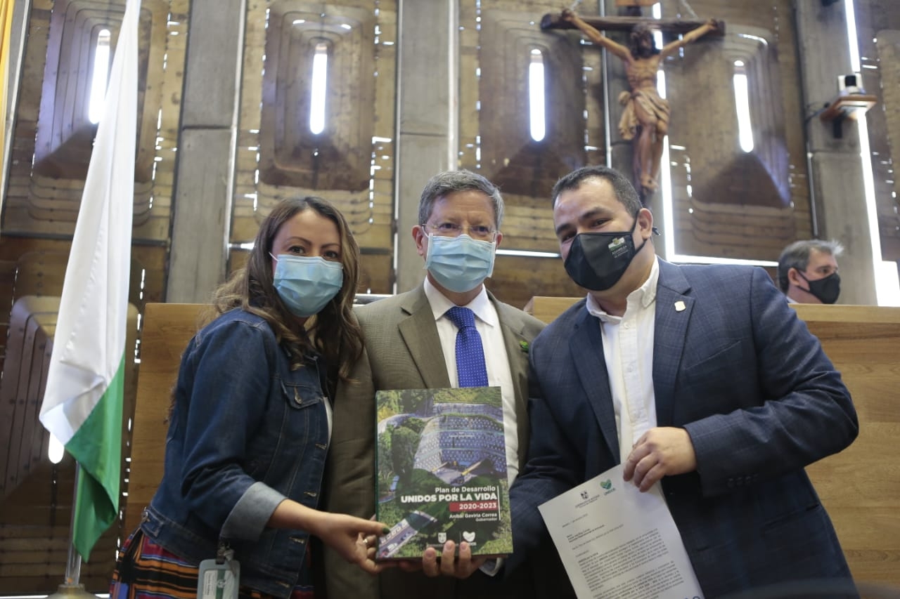 Al finalizar la instalación, el gobernador encargado, Luis Fernando Suárez Vélez, hizo entrega de la publicación del Plan de Desarrollo UNIDOS por la Vida 2020-2023 a cada uno de los diputados.