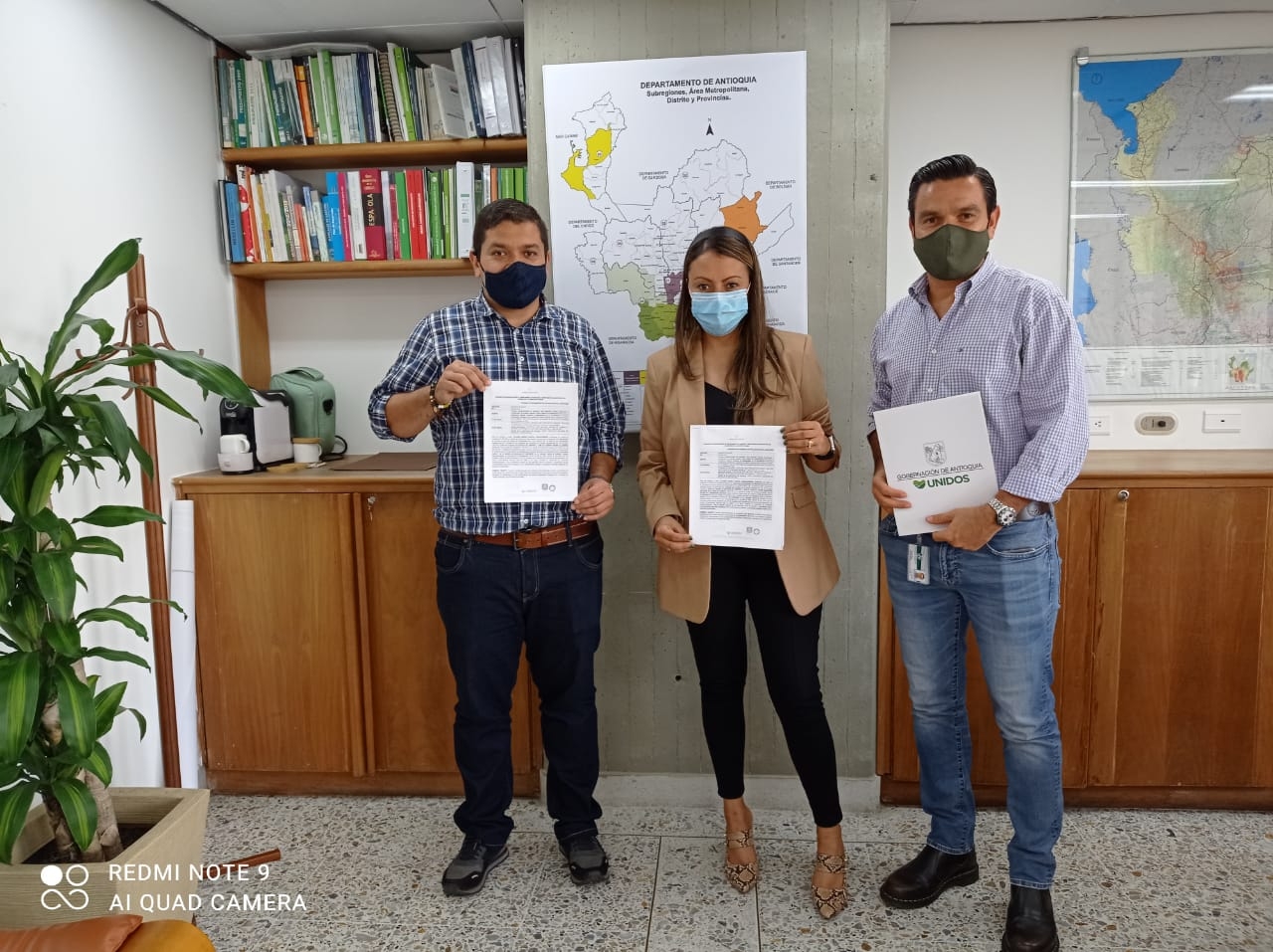 En la foto de izquierda a derecha: Alcalde de Andes, Carlos Alberto Osorio Calderón; la Directora del Departamento Administrativo de Planeación de Antioquia, Claudia García Loboguerrero y el Gerente de Catastro Antioquia, José Giraldo Pineda en la Gobernación de Antioquia.