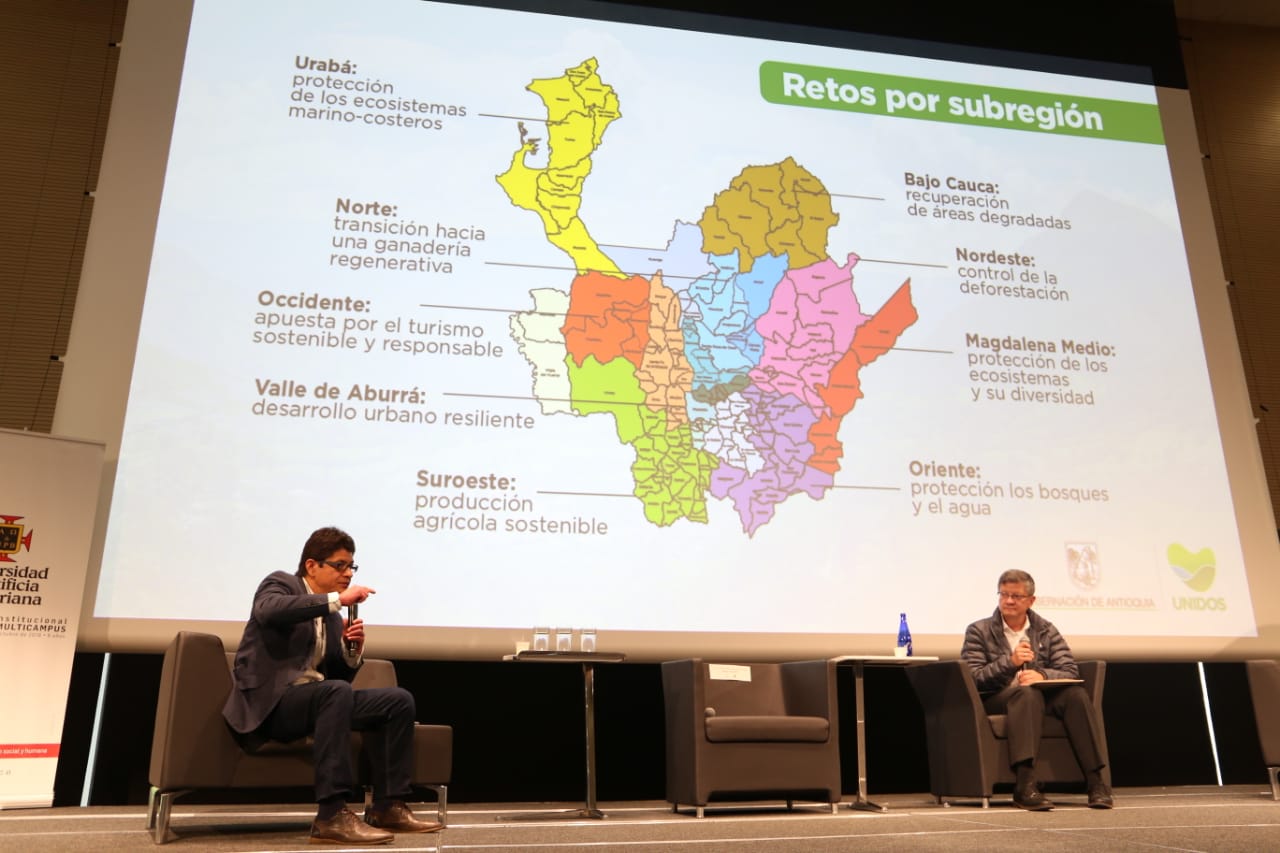 - Existen unos retos ambientales por subregión, que son el punto de partida para el trabajo articulado entre la Gobernación y los municipios antioqueños: protección de los ecosistemas marino-costeros (Urabá); transición hacia una ganadería regenerativa (Norte); apuesta por el turismo sostenible y responsable (Occidente); desarrollo urbano resiliente (Valle de Aburrá); producción agrícola sostenible (Suroeste), recuperación de áreas degradadas ( Bajo Cauca), control de la deforestación (Nordeste), protección de los ecosistemas y su diversidad (Magdalena Medio) ; y protección de los bosques y el agua (Oriente).