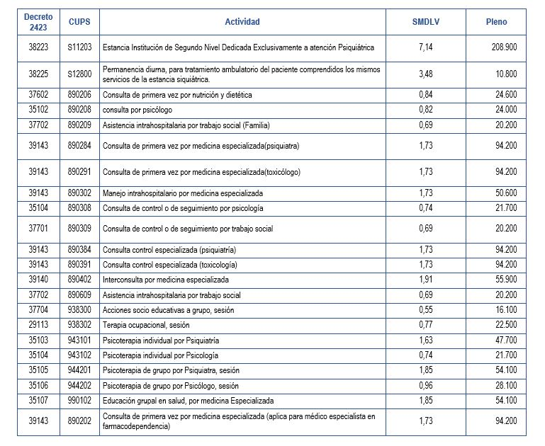 Las tarifas para pacientes particulares se relacionan según lo dispuesto en el decreto 2423 de 1996, donde se establece el régimen y los criterios adoptados por parte del Gobierno Nacional para instaurar las tarifas de los servicios prestados por las entidades hospitalarias; acordando que estas se cobran en Salarios Mínimos Legales Mensual Vigentes (SMLMV). Según la suba del Gobierno Nacional del 6%, el SMLMV en Colombia es de $877.802 y el SMDLV es de $29.260, las tarifas de la ESE Hospital Carisma quedan así: