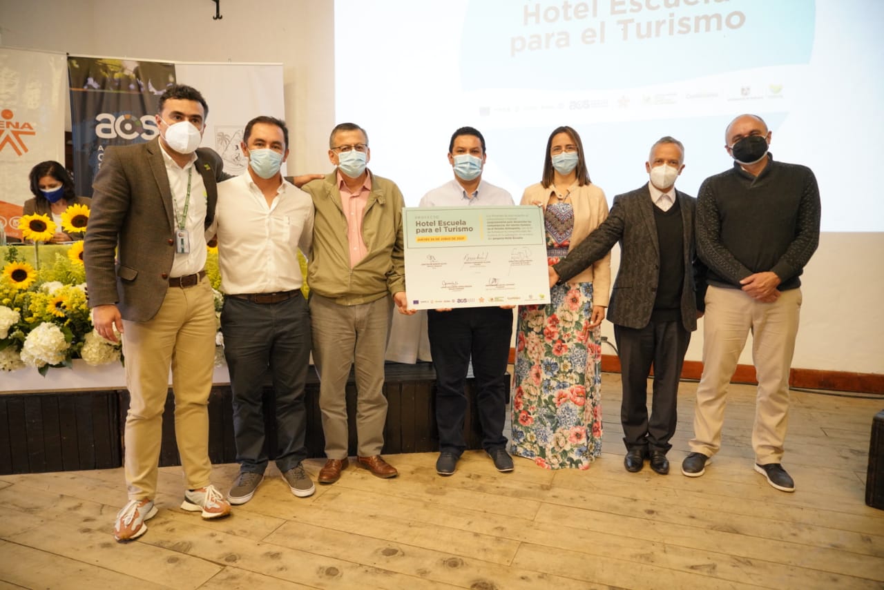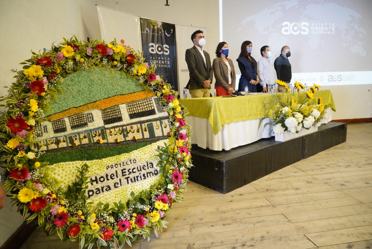 La presentación del proyecto Hotel Escuela también sirvió de escenario para el lanzamiento del proyecto “Alianza territorial para la sostenibilidad y la competitividad en el Oriente Antioqueño”, también denominado Alianza Oriente Sostenible (AOS), una acción cofinanciada por la Unión Europea que busca generar dinámicas territoriales para promover un desarrollo sostenible e inclusivo en el Oriente antioqueño.