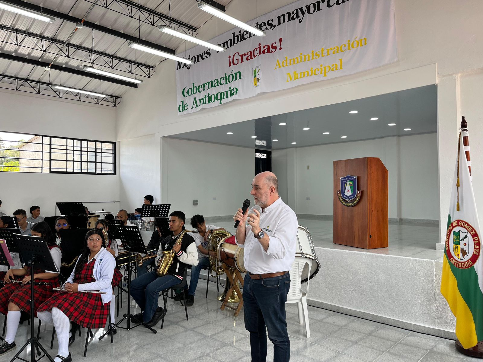 La Gobernación de Antioquia, a través de la Secretaría de Educación, entregó este miércoles las obras de mejoramiento del aula múltiple de la Institución Educativa Gómez Plata, que beneficiará a 710 estudiantes y anunció que intervendrá 16 sedes educativas del municipio con recursos por 434 millones de pesos para mejoramientos menores.
