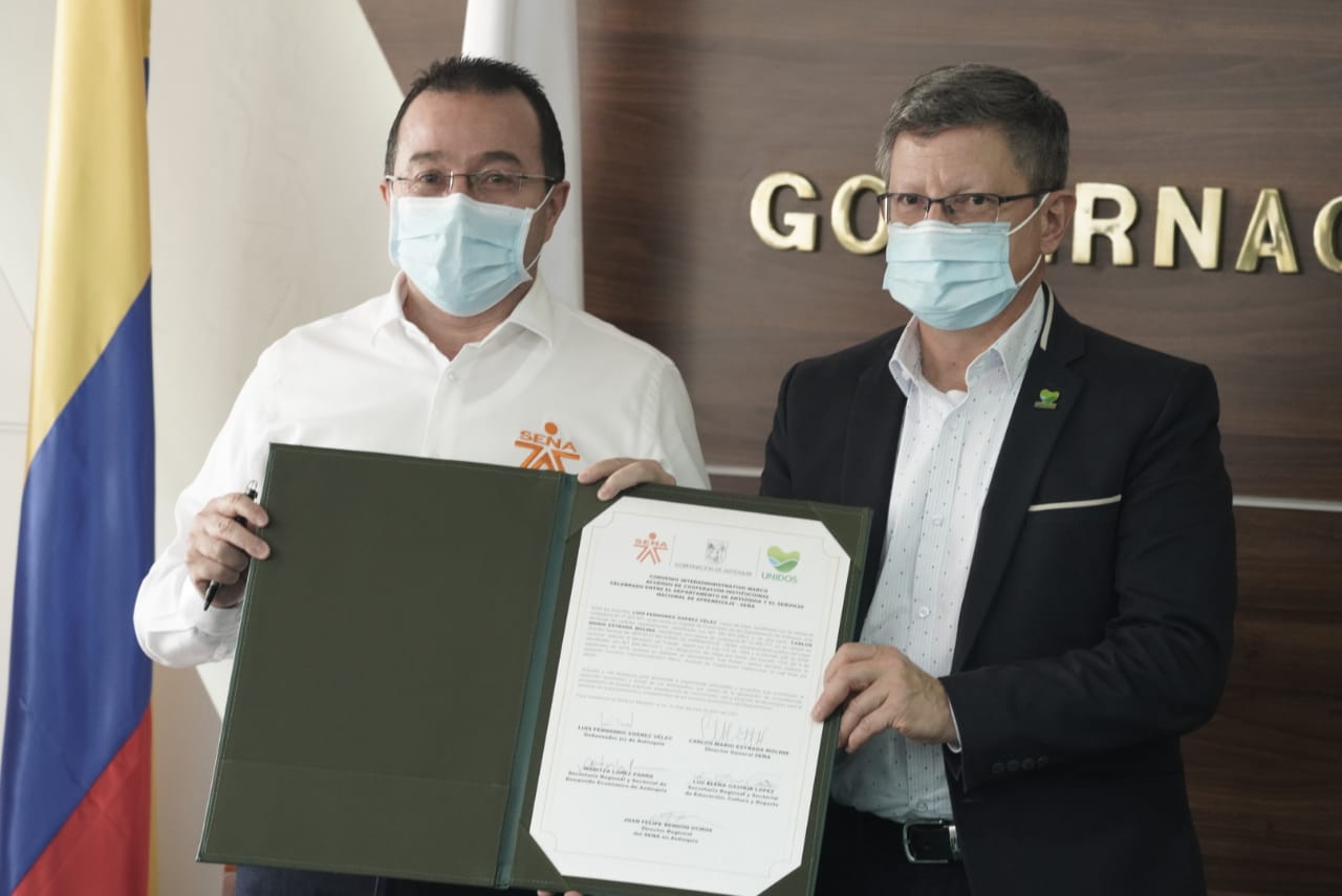 El Plan de Desarrollo Unidos 2020 -2023, busca que Antioquia se consolide como un territorio competitivo e innovador; así, unidos al SENA, se firma este acuerdo para fortalecer las capacidades empresariales, promover el emprendimiento, desarrollar estrategias que incentiven la innovación y las competencias tecnológicas, aportar a nueva infraestructura educativa e impactar la formación técnica desde los colegios, al igual que fomentar el bilingüismo.